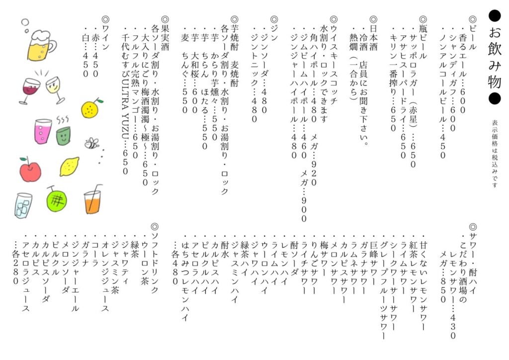 | 営業時間 | 月曜日~木曜日 17:00~22:30 金曜日・土曜日 17:00~23:00 |