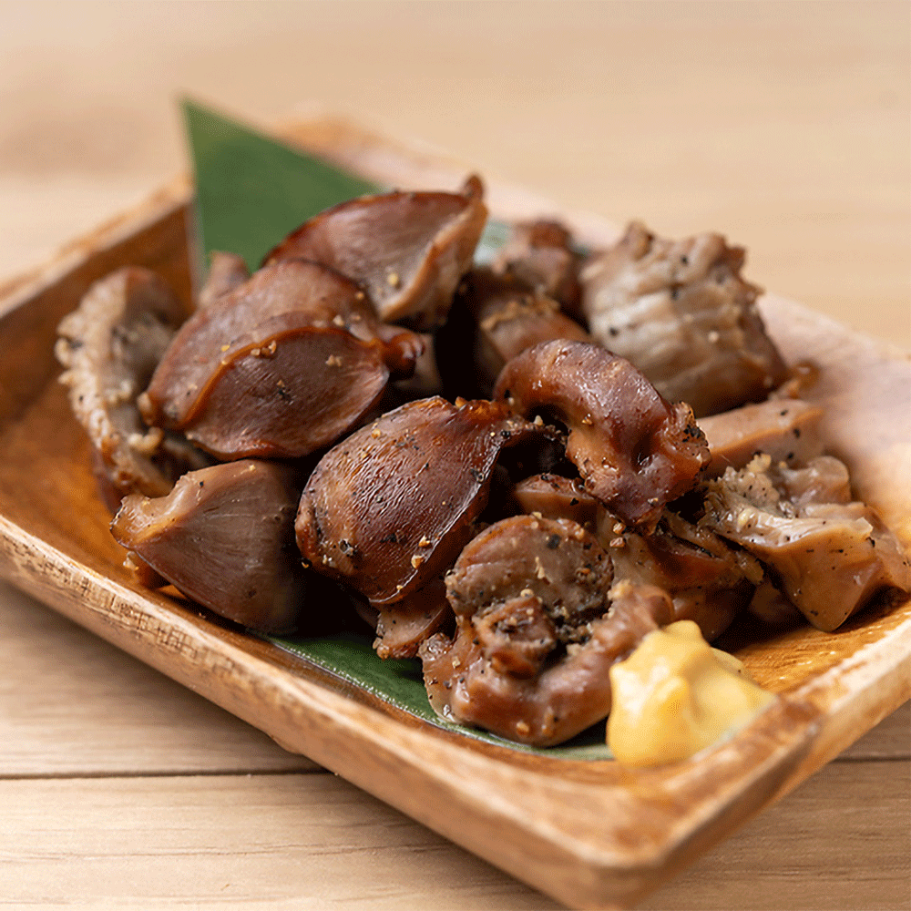 看板メニューは、鶏モモ、ムネ、ササミ、砂肝、鶏モツなど、部位ごとに仕上げた鶏のくんせいです。